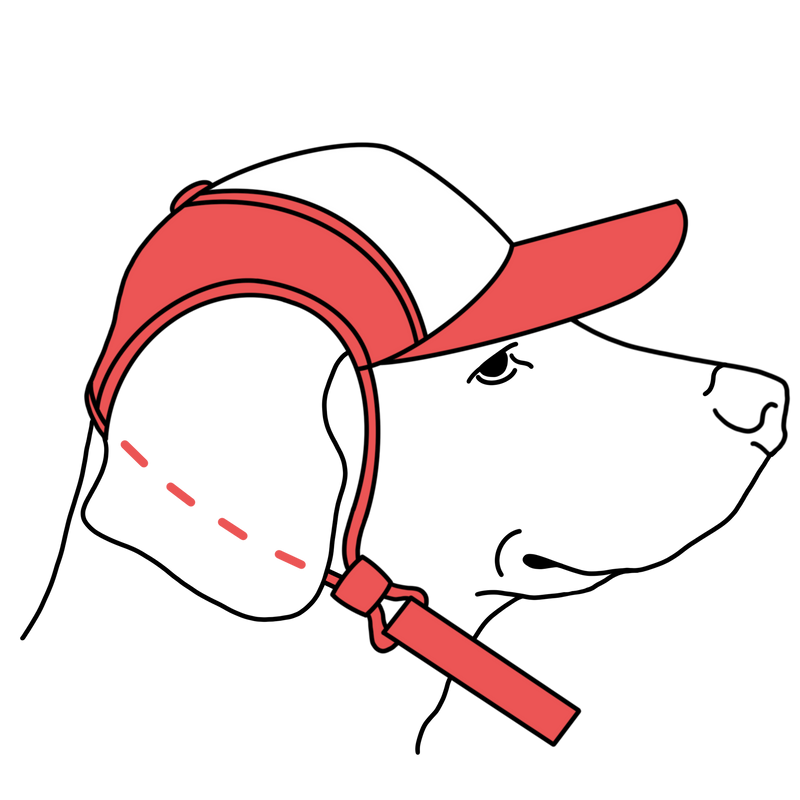 Slide the chinstrap forward or back along the elastic loops to position the brim just above your pup’s eyes for optimal shade.